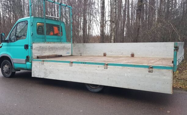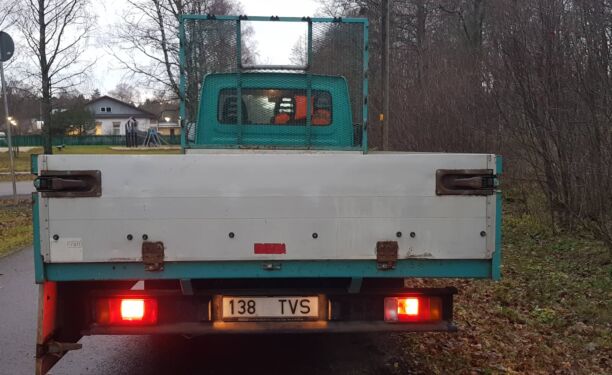 B-Kategooria veoauto Kasti mõõdud: 4200*2200mm, saab vedada kuni 6m materjali. Olemas 3,5m/3,5t pealesõiduteed +25€. Läbisõidupiirang 1 päev/250km päevas, 1000km/nädalas, 2500km/kuus. Iga lisanduv kilomeeter 0,20eur /km. Auto anname üle puhtana nii seest, kui väljast ning täis paagiga. Tagasi tuleb tuua samamoodi puhtalt ja täis paagiga. Välispesu 25€, sisepesu 25€, kütus 2€/L.