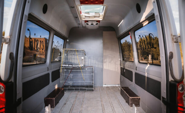 Masin on Eestis ise ümber ehitatud invakaubikust lemmikloomade veoloaga masinaks. Salongis on 3+1 istkohta, laud. 220V vool, USB-laadimisühendused laes ja laua kõrval. Juhi armatuuris on temperatuurimüüdikud eraldi kaubaruumi ja salongi temperatuuri kuvamiseks. Vaheseinas on uks et reisi ajal saaks minna kaubaruumi osasse vajadusel. 1 istekoht on liigutatav ettepoole ukse kasutamiseks. Kaubaruumi osas on põrandatel siinid millesse saab kinnitada põrandakinituse klambreid täpselt vajalikesse kohtadesse erimõõdulise kauba kinnitamiseks. Tagaosas on lisaventilatsioon, konditsioneer ja talvel lisa-soojendus. Kaubaosas on inva-kaldtee. Autol on ees üleval lisavalgustus öise sõiduks ning taga laadimiseks eri lülitiga sisse lülitatav seisuvalgusti. Lisaks tagavaatekaamera. Juhil vajalik B-kat luba. Masin on 8m pikk. Lisatasu eest saan soodsalt rentida sõiduks loomadega ka vajalikus suuruses metallpuure ja bokse. Oma auto saab jätta rendi ajaks samale kohale tasuta parkima. Läbisõidupiirang: